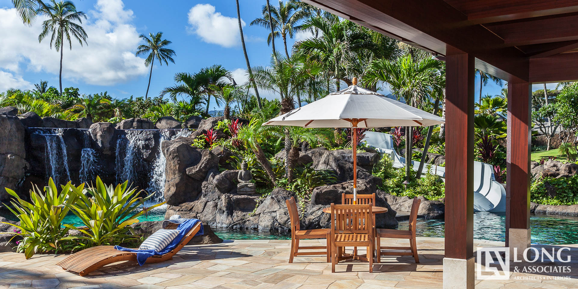 "On this 2.2-acre property on Kailua Bay, two single-family, two-story homes are centered around a separate pool pavilion, which acts as a retreat from the midday sun and wind-whipped sands of the nearby beach. Serving as a true hub for family life, the indoor-outdoor pavilion has a layered lanai pergola that doubles as a natural light shelf to reinforce the indirect daylighting strategy provided by eight solar-powered, openable skylights with automated shades."